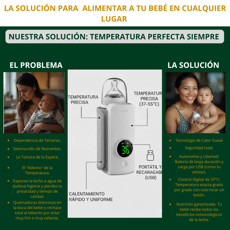 Equipado con una opción de temperatura ajustable hasta 50°C, puedes adaptar el calentamiento según tus necesidades. Una vez alcanzada la temperatura deseada, la leche se mantiene caliente hasta que tu bebé esté listo para beber.